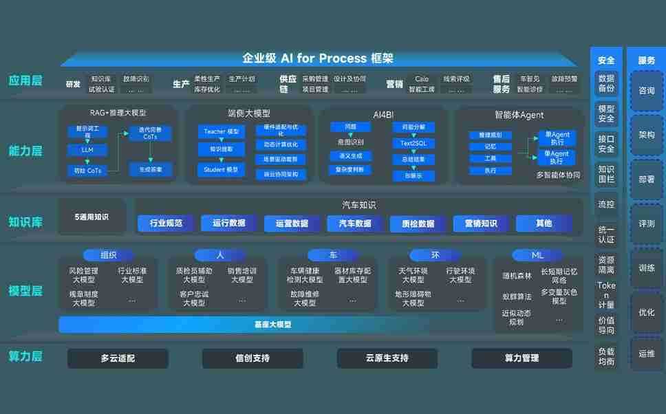 端到端的一站式AI工作空间深度融合了从企业战略规划到日常经营的全流程业务板块,,定向解决车企内部领域多、、部门多、、链条长、、、场景碎片化等难题,,支持车企快速构建以AI为核心的生产力写作体系,,,实现任务执行与AI能力的无缝集成与交互