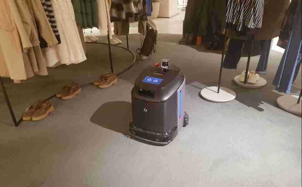 门店采用租用清洁机器人业务模式,,,保洁员配合机器人,,,保障清洁质量,,,,落实人+机结合清洁理念。。。。由1台清洁机器人每日定时多次进行洗地、、尘推、、、吸尘及清扫作业。。。保洁人员配合进行垂直清洁及边角清洁。。。机器人释放180H/月的工时,,,相当于1-1.5个岗位。。。按时薪25元/小时算,,释放工时价值:¥4500/月。。